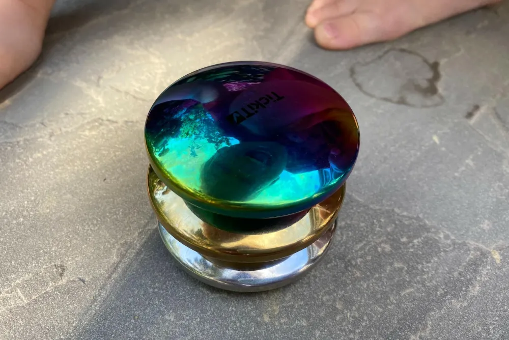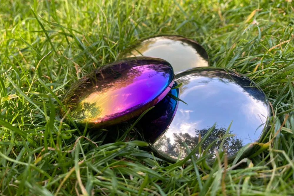 De metalliske overflader spejler lyset på en sjov måde, så man ser skæg ud, når man ser ned i sansestenene. De har hver deres lyd og hver deres overfladefarve: multicolor, guld og sølv.