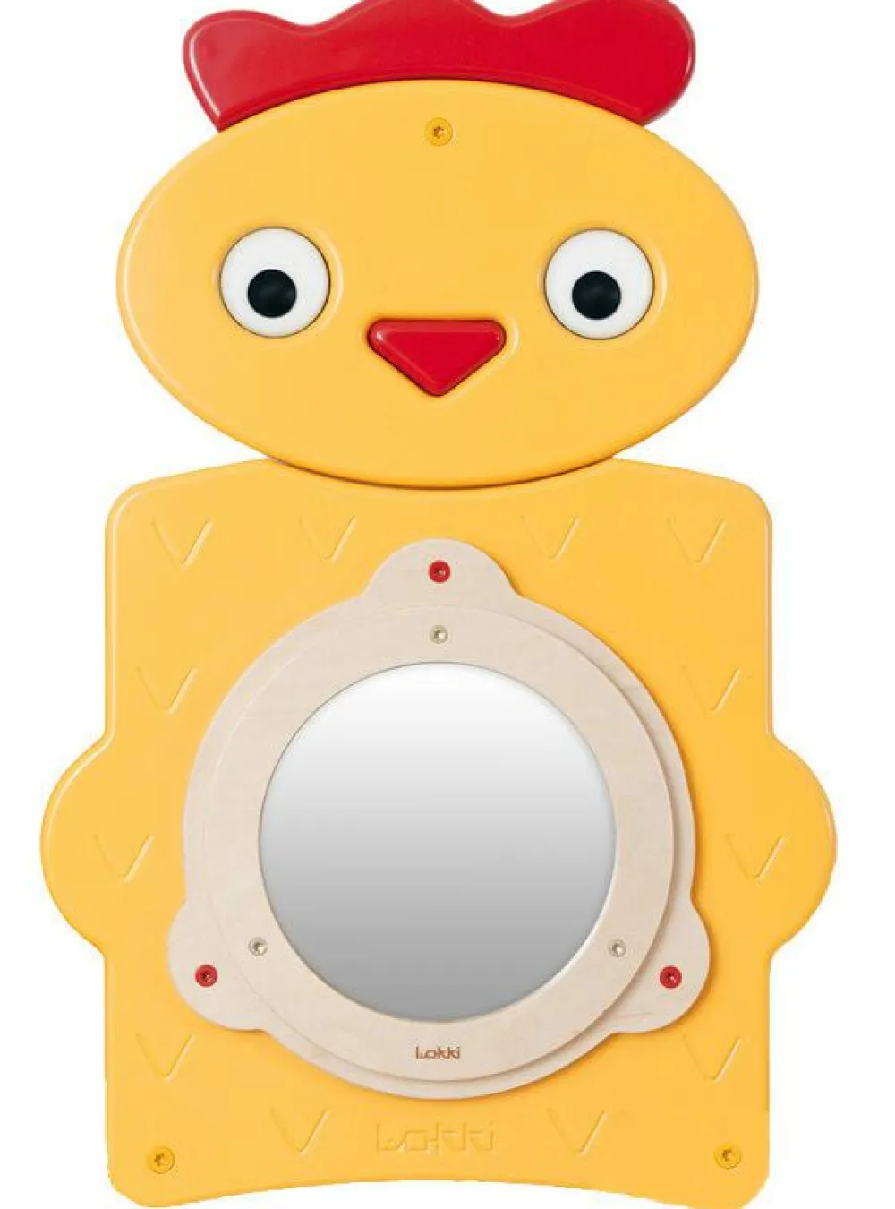 KykkeliKy – den søde kylling vil gerne snakke med dig! Med spejlet på maven er dette søde vægelement en sand børnemagnet.