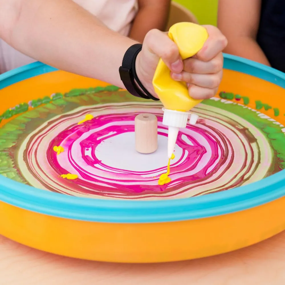 Hvordan kan du på en sjov måde demonstrere fysiske kræfter for børn og samtidig hjælpe dem til at lykkes med at lave fine kunstværker?
