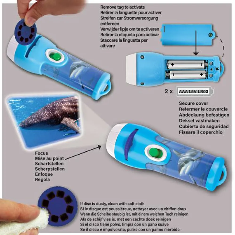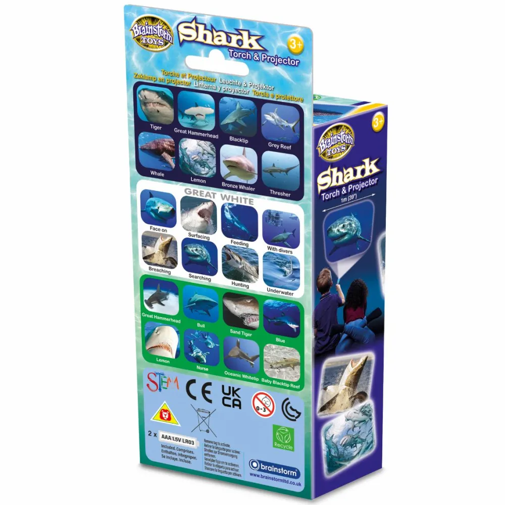 Sej lommelygte, som kan vise 24 flotte billeder af forskellige fascinerende hajer.
