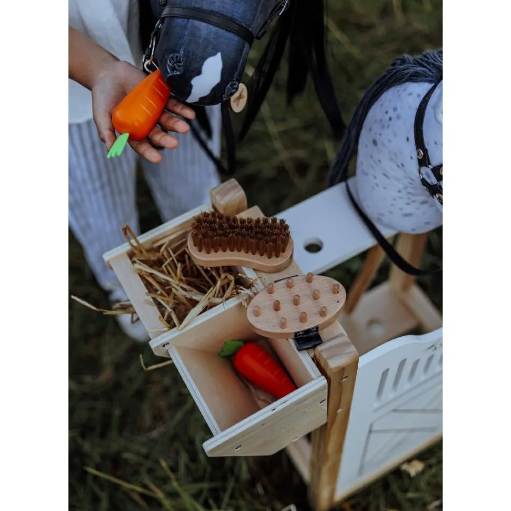 Suppler kæphesten med ridehjelm eller rustning eller måske springtilbehør. Så er ungerne klar til at arrangere ponyopvisning, hestevæddeløb i haven eller gården eller lege mægtig ridder.Der er en god grund til, at kæpheste er en legetøjsklassiker, og legetanterne elsker, at kæpheste har fået en kæmpe genopdagelse blandt børn, unge og voksne.