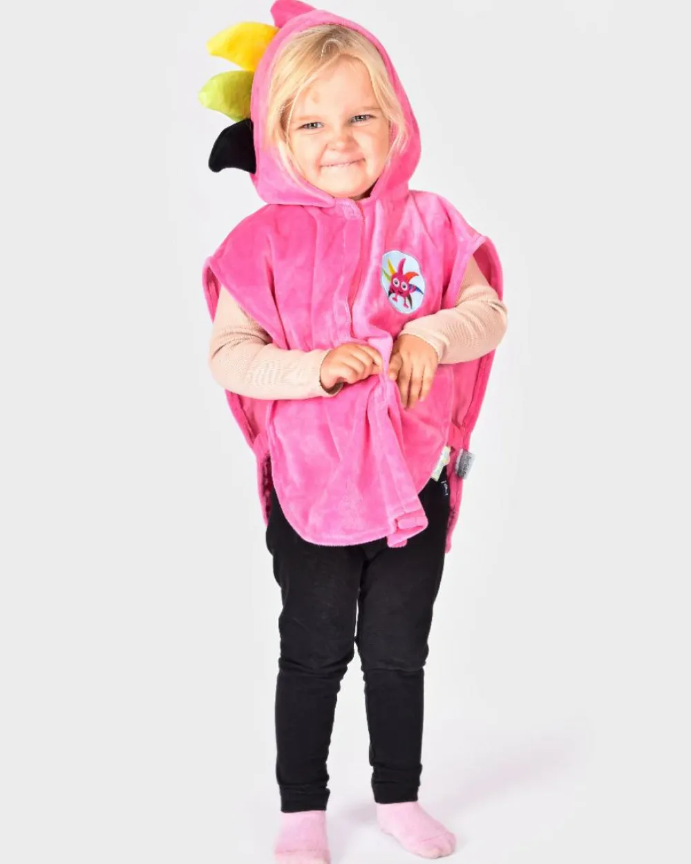 En sød kappe med hætte, der lukkes med velcro. Dit barn kan nemt få den af og på.