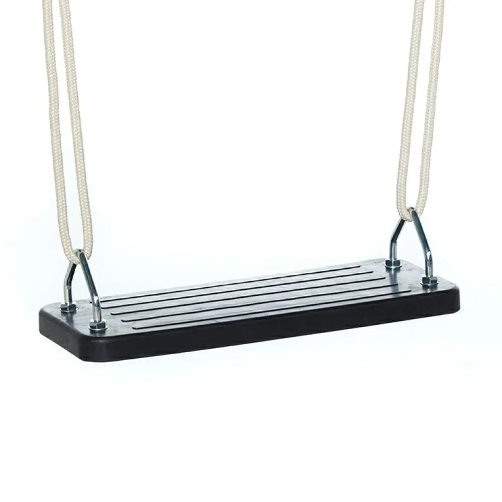 Et gyngesæde i gummi giver en sikker og behagelig gyngetur for børn i alle aldre. Den indvendige metalforstærkning gør sædet ekstra robust, mens det sædets gummimateriale er rart at sidde på. De flettede gyngetov er både slidstærke og bløde at holde ved, så små hænder får et godt greb. Gyngen er vejrbestandig og kan justeres i højden, så den passer til forskellige gyngestativer.
