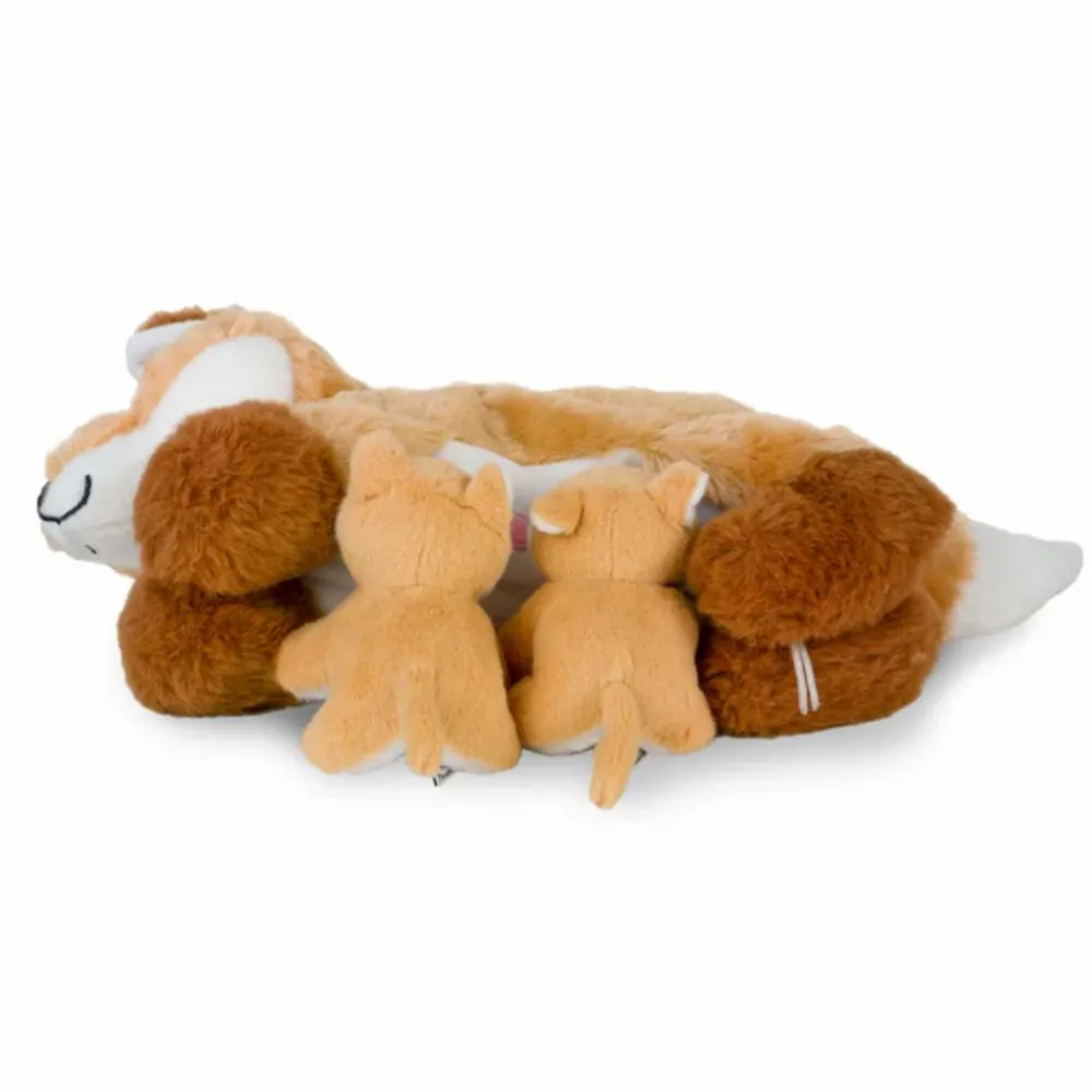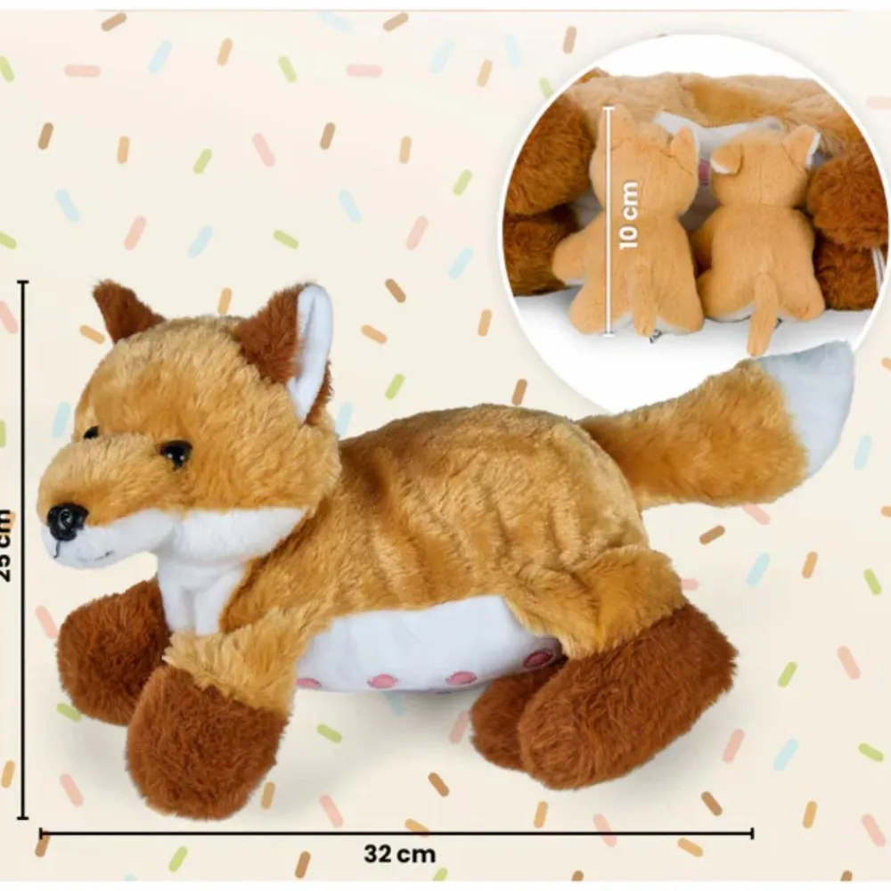 Familiebamser er dyr med unger. Her er en omsorgsfuld rævemor med maven fuld af unger. Ungerne kan gemme sig i deres lune hule eller kommer ud og die.