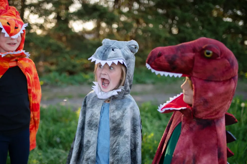Sej Spinosaurus-kappe, som passer udover vintens overtøj til fastelavn.