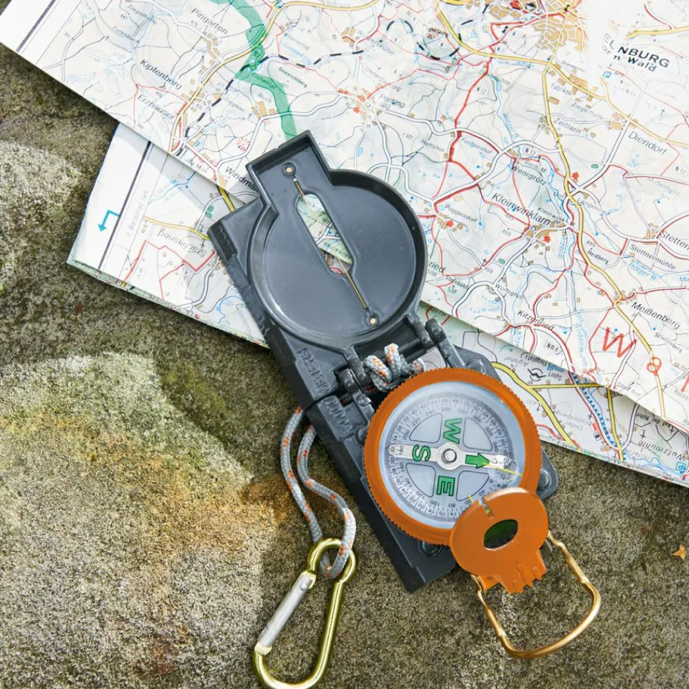 Med karabinhage, så kompasset kan sidde i en bæltestrop eller på rygsækken.