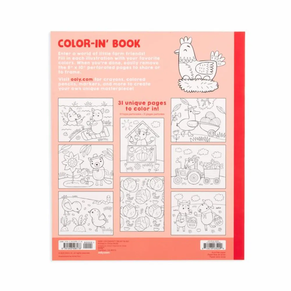 Her er malebogen – eller farvelægningsbogen er det jo – til børn, kan lide bondegårdsliv og søde dyr, der passer gården.