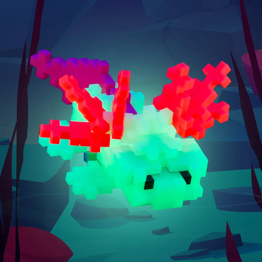 Byg den særlige Plus-Plus-Axolotl, som kan lyse i mørke.