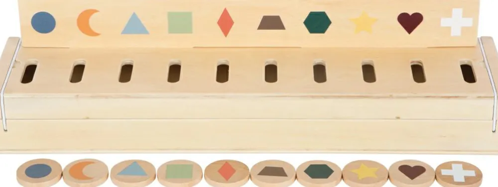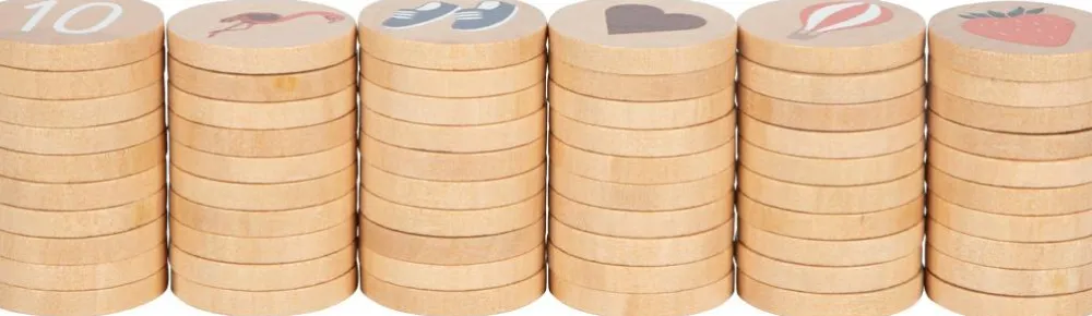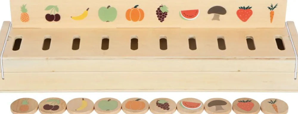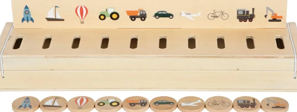 Hvilke starter I med? Og hvem kan sortere hurtigst? Og kan dit barn navnene på alle motiverne? Der er to af hver lille motiv-flise, så to kan sortere samtidig og dyste mod hinanden.