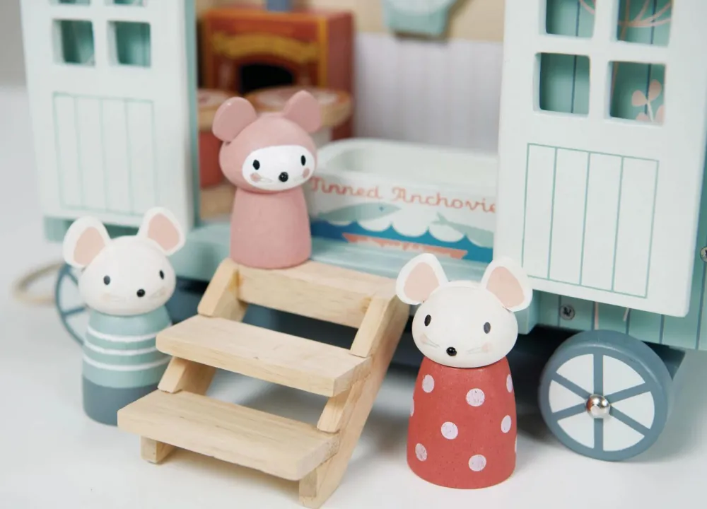 De her mus kan godt være tilfredse med deres transportable musebo, der er som en sej autocamper. Følg med i dit barns leg og se, hvor musene tager hen.