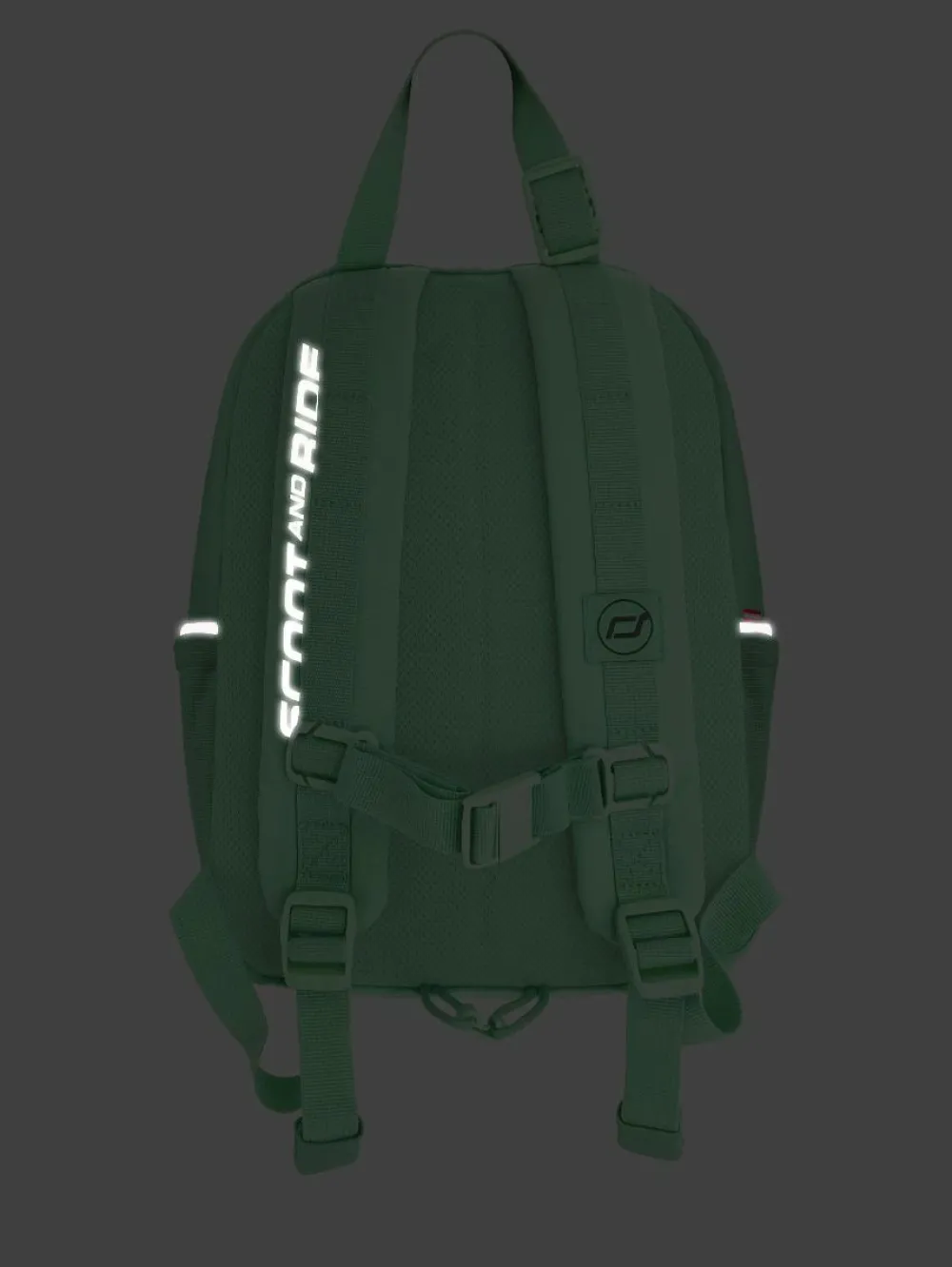 De store reflekser på rygsækkens logo gør dit barn nemmere at se i trafikken.