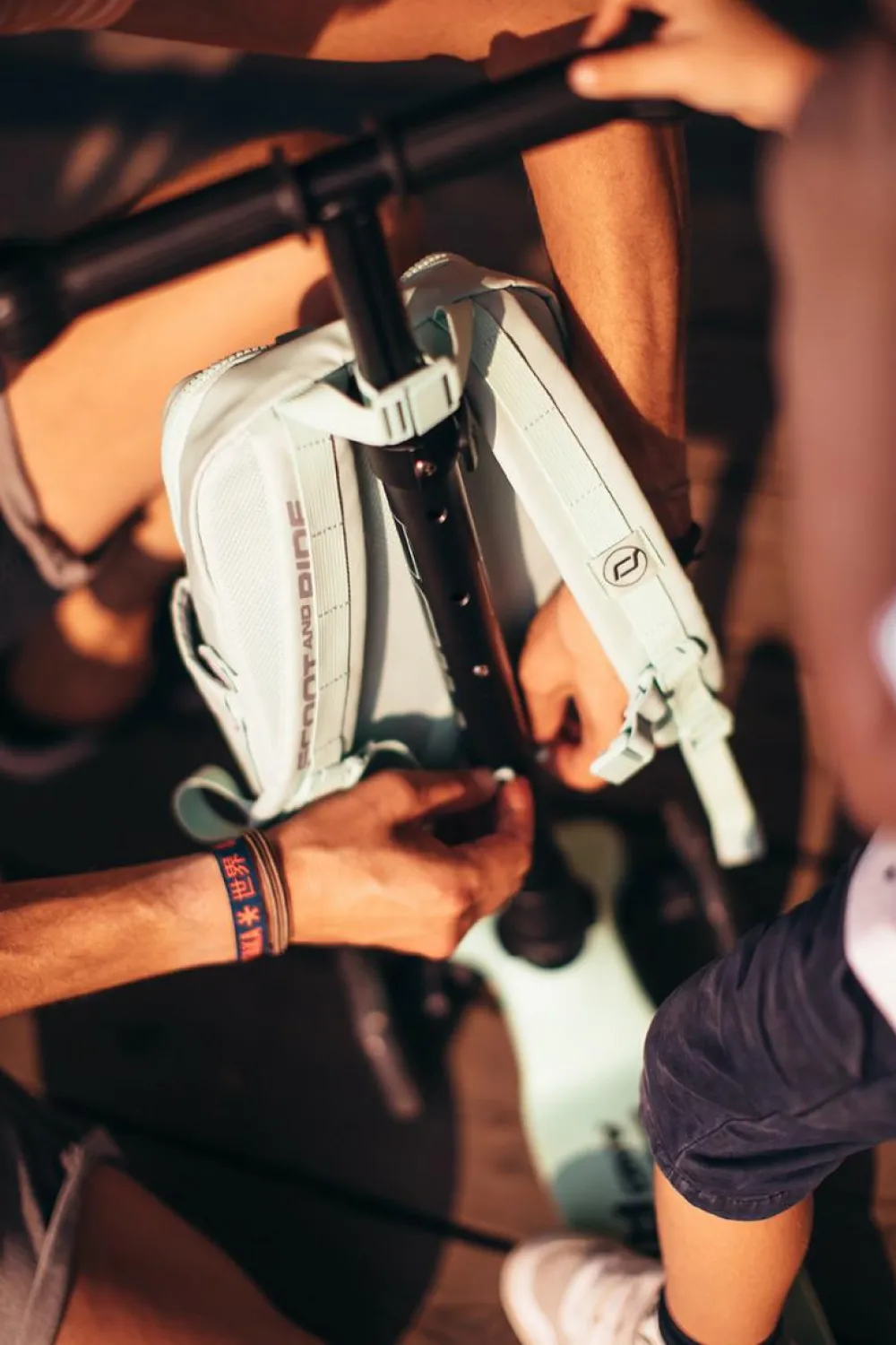 Stropperne er justerbare og rygsækken kan spændes om maven, så den sidder godt tæt til ryggen og er rar og ergonomisk at have på.
