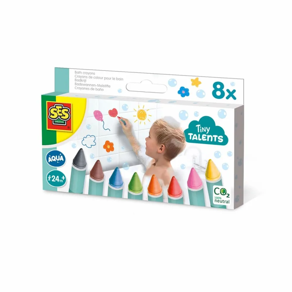 Disse farvekridt kan man male med i badet. Alle hårde flader såsom fliser og emalje kan tåle at blive til små kunstværker, mens dit barn fornøjer sig med at blive ren.