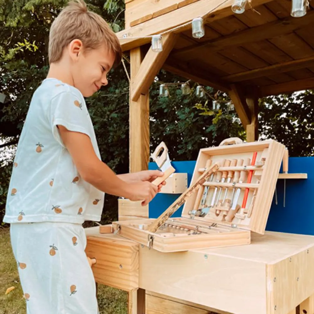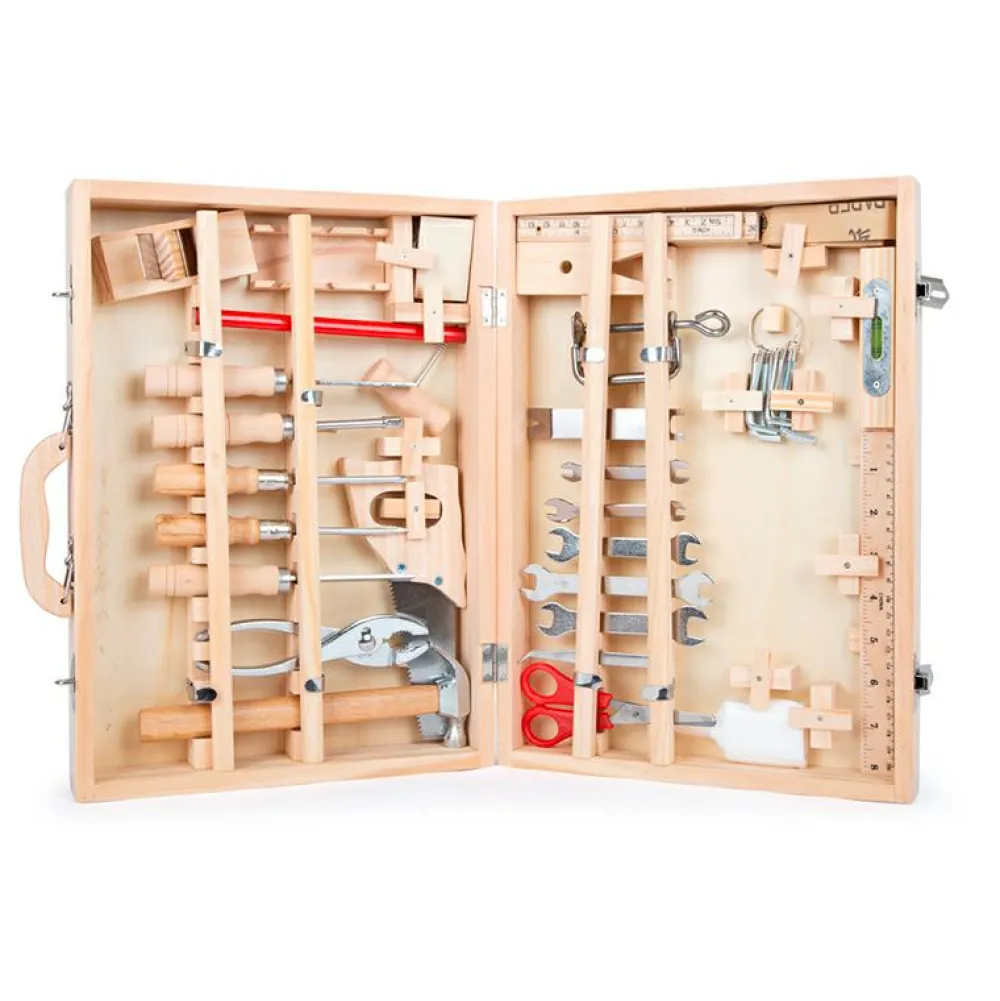 Alt har sin helt egen plads i værktøjskassen, så dit barn kan holde styr på sit grej. En stor del af at lære at være håndværker er at kunne holde styr på sit værktøj, og det er der rig mulighed for her.