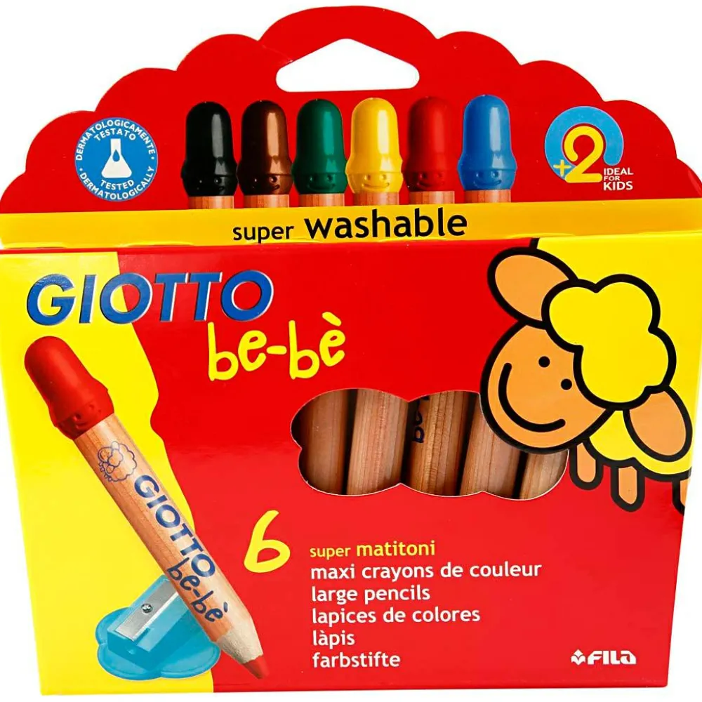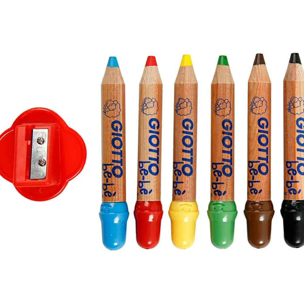 Der medfølger en blyantspidser, der passer til jumbofarverne. Fås også i en større pakke med 12 stk.