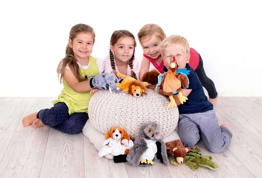 Hånddukker er også en naturlig del af dukketeateret sammen med fingerdukkerne, og I kan bruge dem til sprogstimulering, hvor der måske er en kanin, der også har svært ved at sige FFFF uden at spytte.
