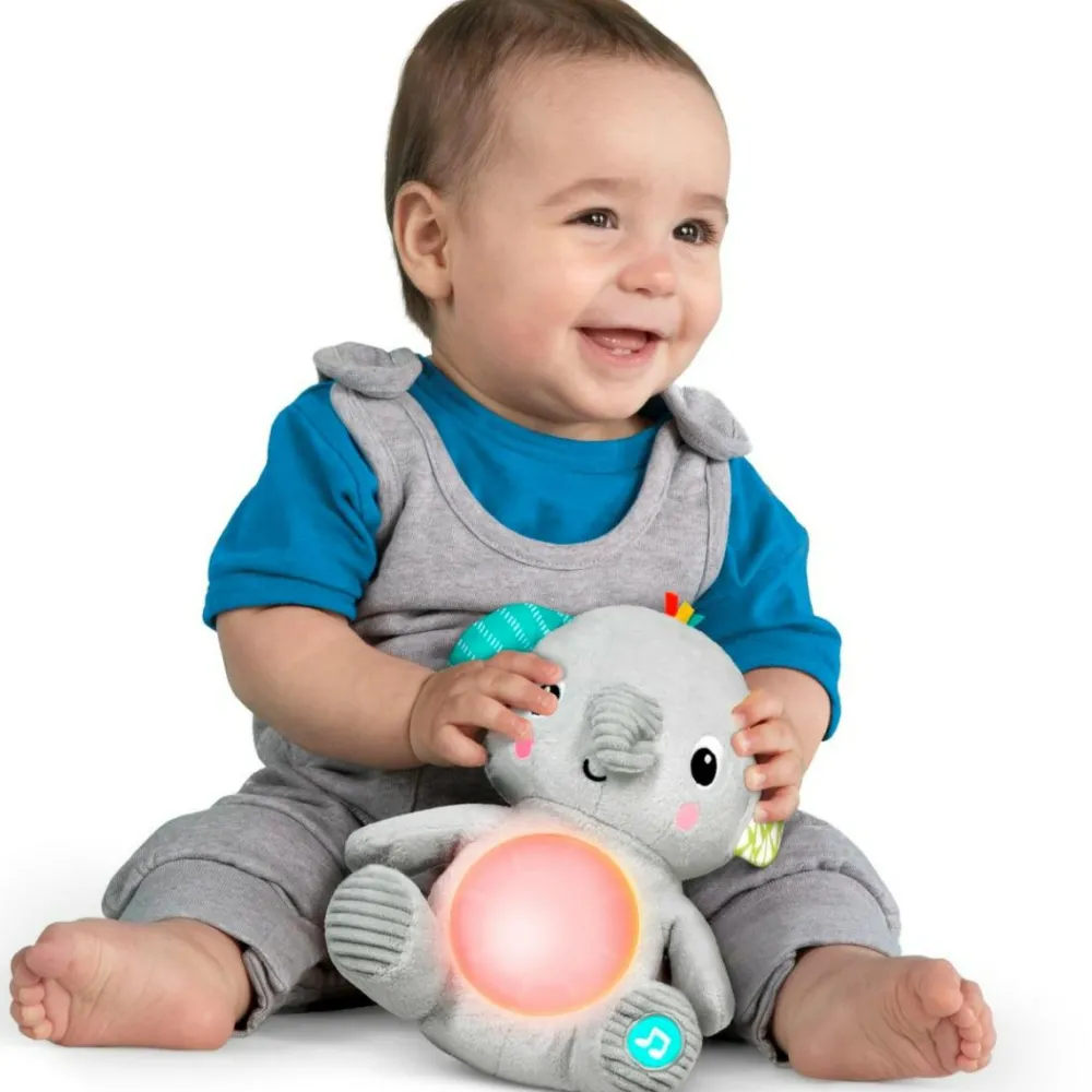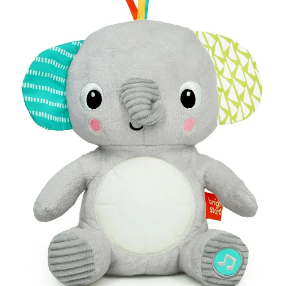 Kær aktivitetselefant, som kan spille forskellige melodier, når den trykkes på sin højre fod. Samtidig med at der spilles musik, blinker elefantens mave, mens ørene knitrer.
