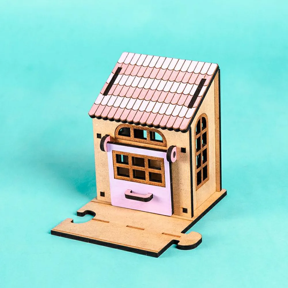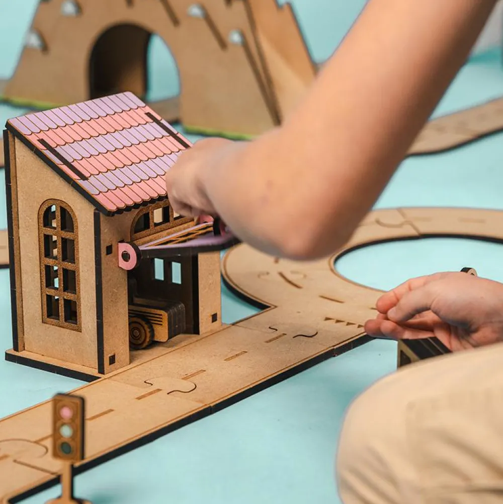 Danskproduceret trælegetøj, der kan bygges sammen med andre Crateit Town-sæt. Her får du et lille fint hus med vinduer at trille bilen ind i eller parkere ved siden af lige ved vejen.