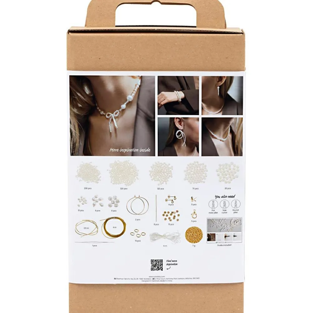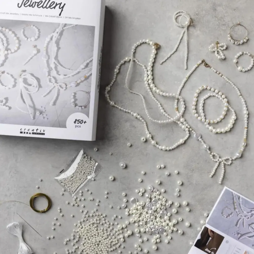 Lav både øreringe, armbånd og halskæder med det fine perlemorslook. Vejledning følger med til at lave bl.a. en halskæde med en stor perlesløjfe på.