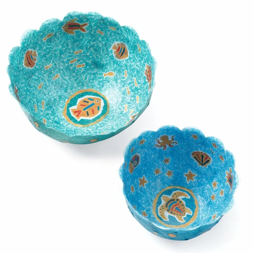 Skålene laves ved, at de små papirlapper klæbes fast udenpå formene og derefter tørrer et par døgn.