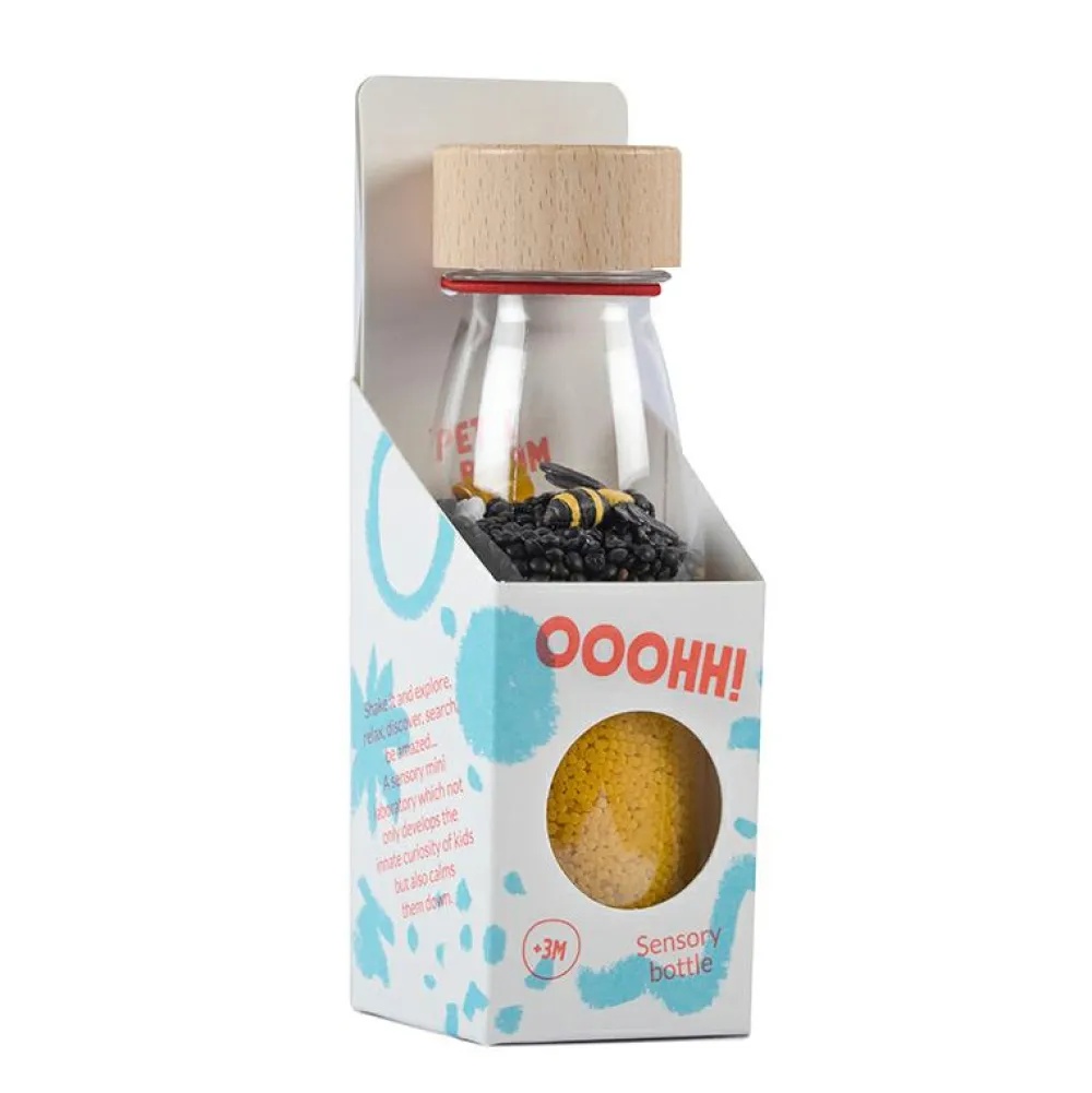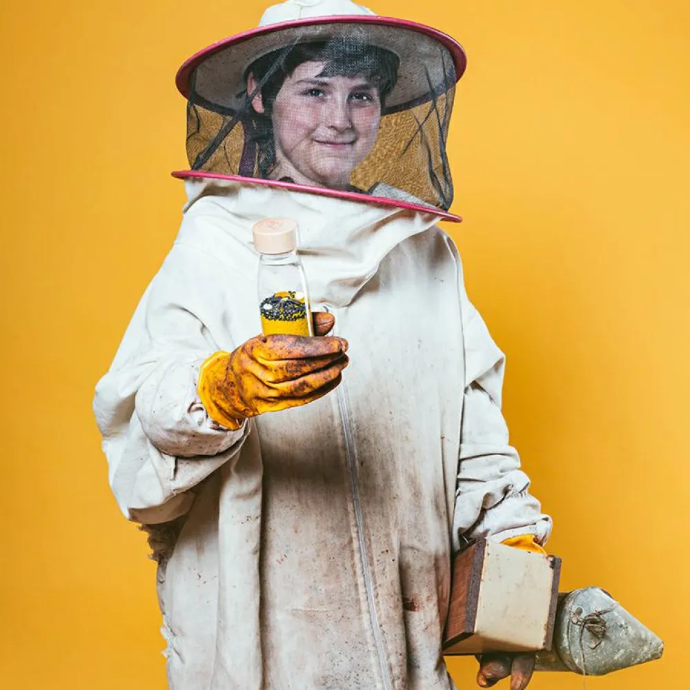 Fald til ro og tag en pause med at vende og dreje flasken og høre bierne og deres indsamlede pollen se rasle rundt derinde i det lille univers.