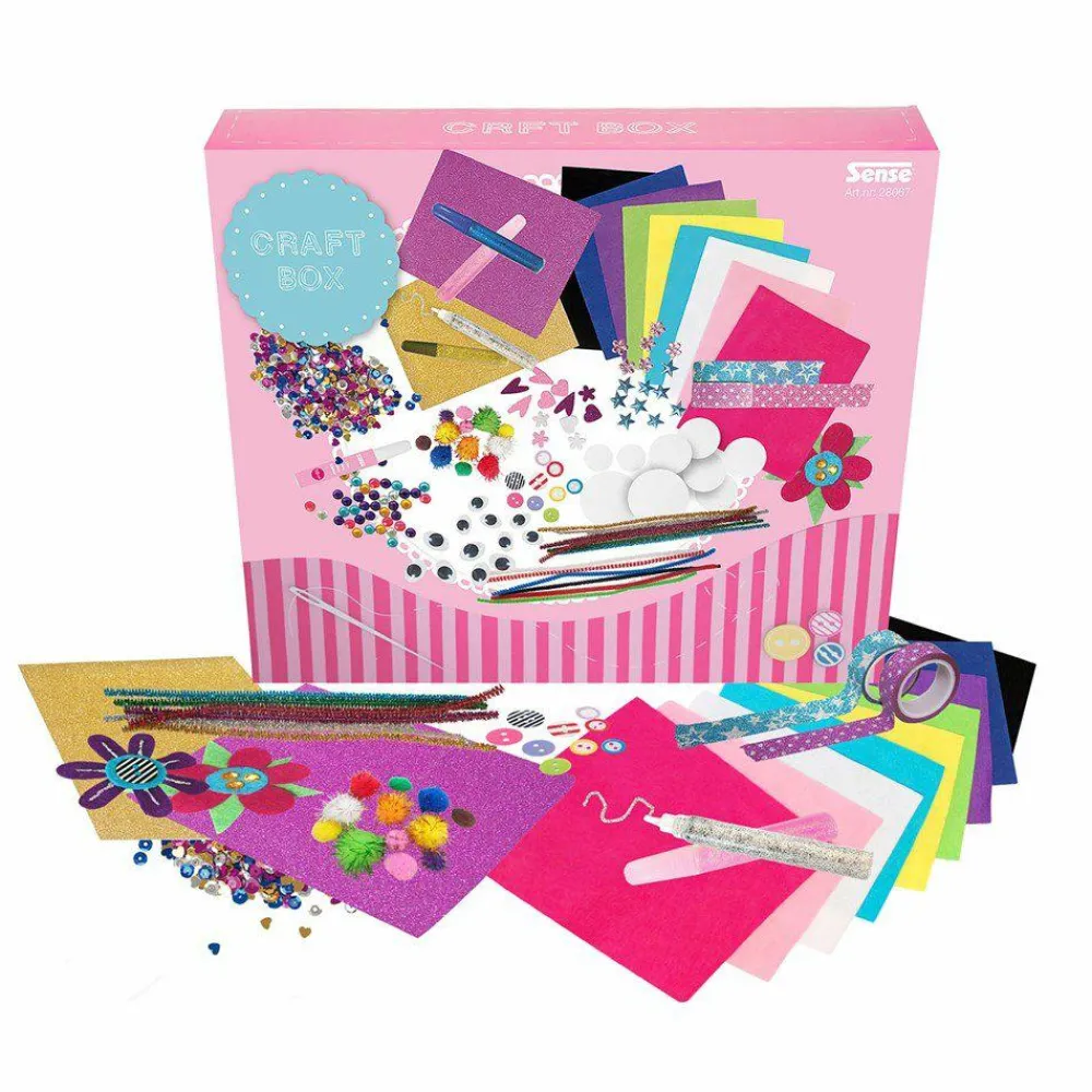 En dejlig blanding af klassiske og mere moderne materialer i mange farver, som I kan tage frem, når det er tid til at være sammen og give finmotorikken og fantasien noget at arbejde med.