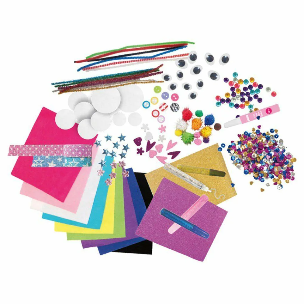 Her er perler og glimmerpapir, pompom’er og piberensere, pap og papir og meget mere.