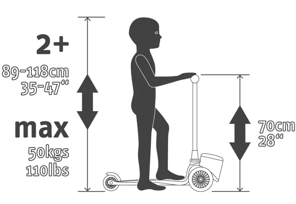 Løbehjulet passer til børn på 89-118 cm i højden (det svarer cirka til 2 til 6 år).