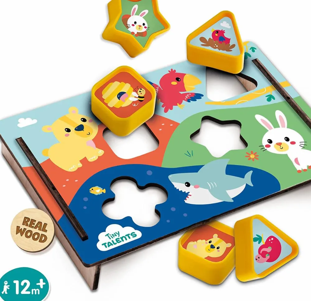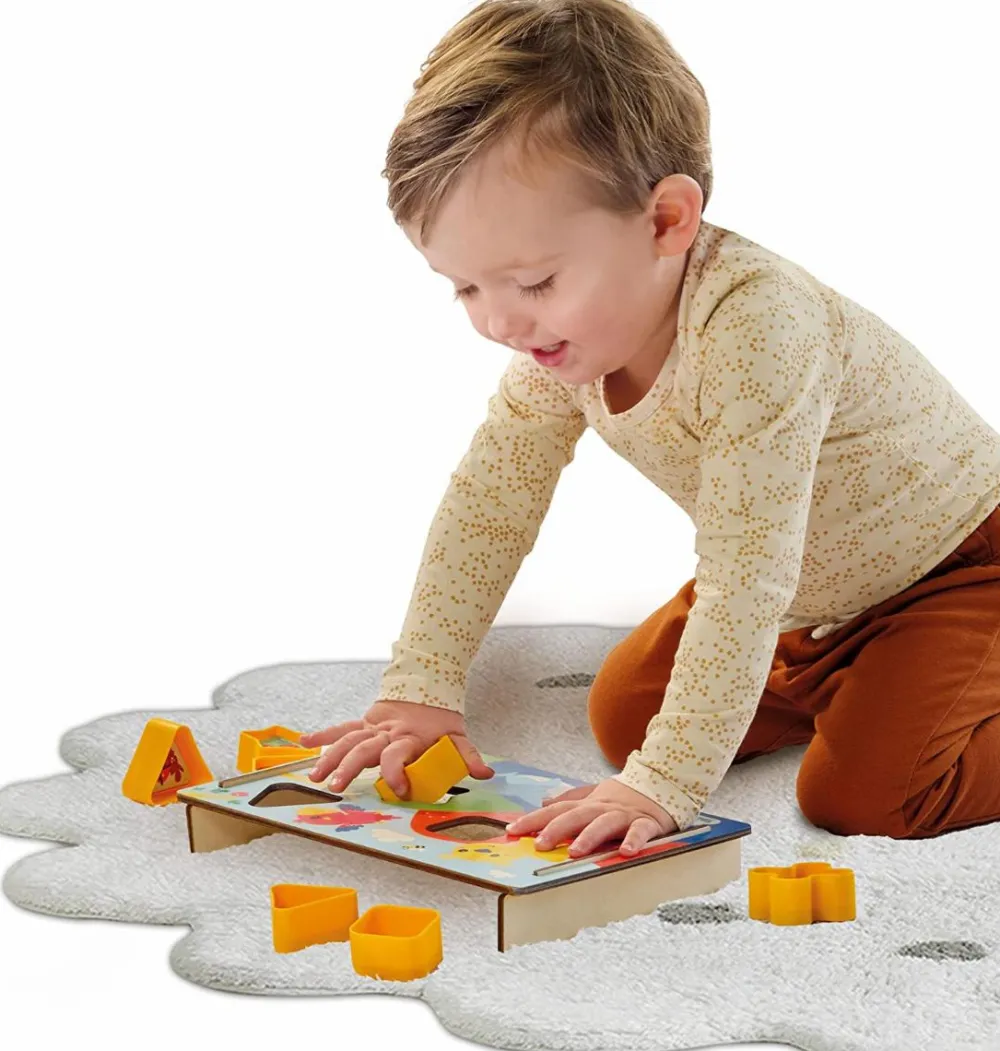 Her kan dit barn undersøge, hvordan i alverden de der fingre kan bringes til at samle den rigtige klods op og putte den det rigtige sted hen, samtidig med, at I kan tale om dyrene og deres foretrukne kost. Spiser en fisk måske gulerødder? Selvom dit barn ikke har et godt greb om at formulere rigtige ord endnu, så gør tal alligevel. At høre dig bruge ord og opleve din forventning til at blive svaret, er afgørende for dit barns udvikling af et sprog.