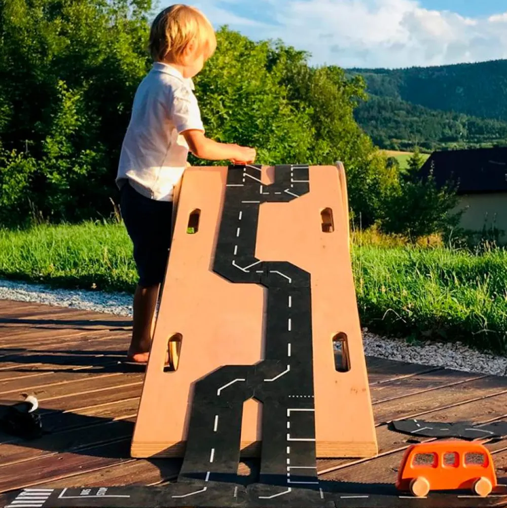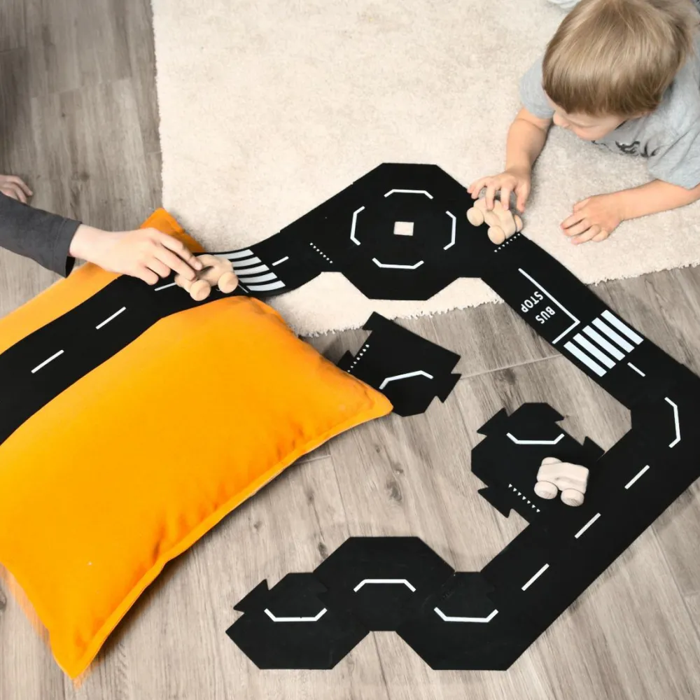 Har du bøvlet med ufleksible bilbaner, hvor delene fx går fra hinanden hvis dit barn bygger hen over gulvtæppet? ToddleRoad er udviklet af en mor, der netop savnede fleksible vejbaner, der passer til de fleste legetøjsbiler og kan bygges over gulvtæppe og niveauforskelle – pyntepuden kan ligefrem blive et bjerg i dit barns leg.