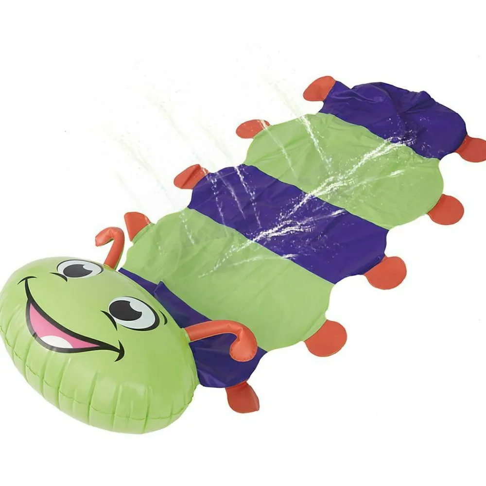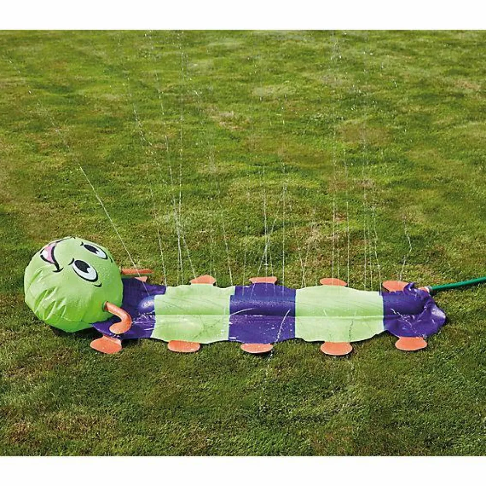 Læg denne sjove larve ud på græsset, tilslut nemt haveslangen, og lad børnene hoppe rundt og blive herligt våde, mens larven pøser koldt vand ud over dem. Hovedet pustes nemt op.