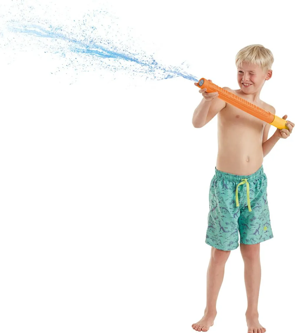 Med en vandpumpekanon trækkes vandet op i kanonen, hvorefter dit barn kan pumpe en stråle ud.