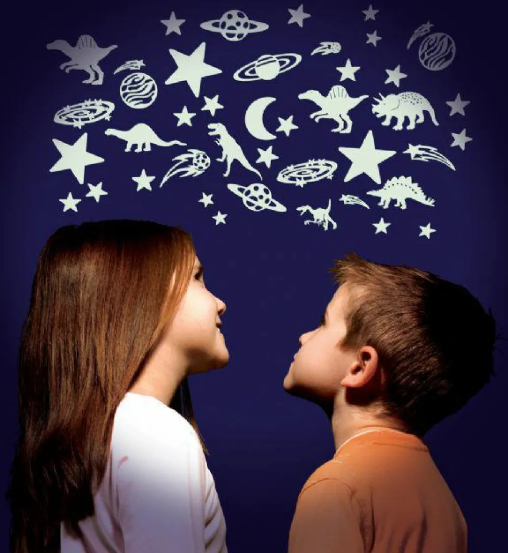 Selvlysende stjerner, stjerneskud og dinosaurer. Flot pakke med det hele.