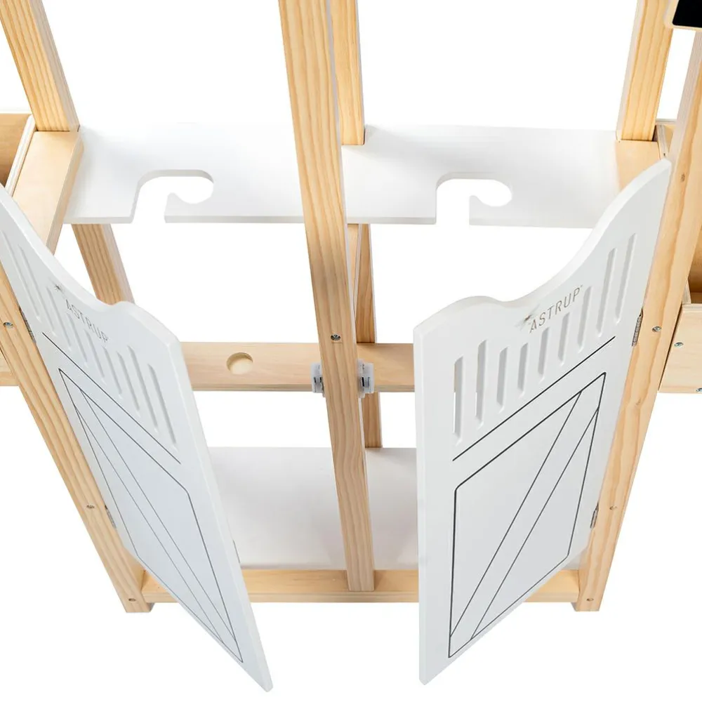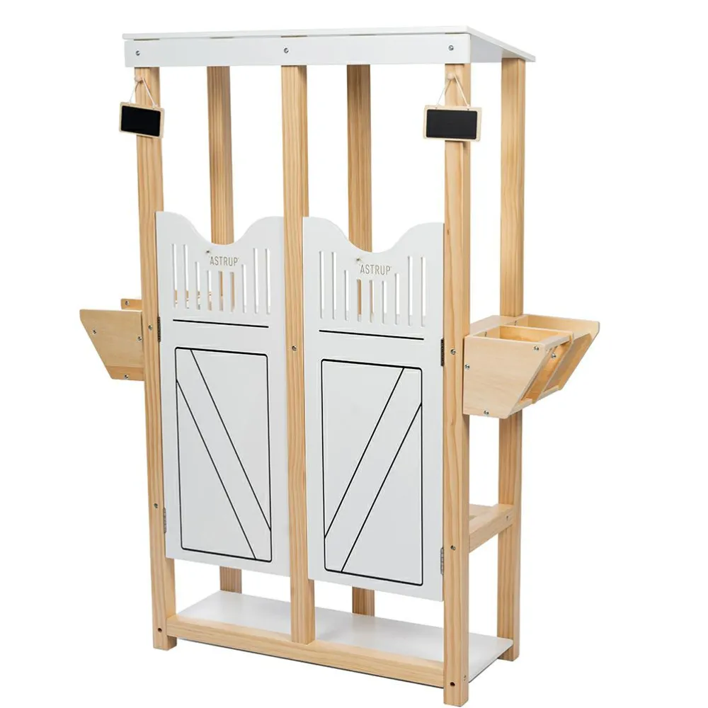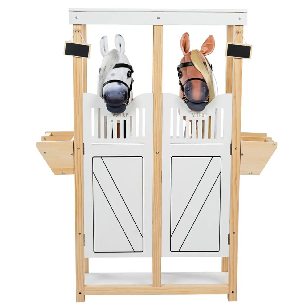 104,1 cm høj hestestald der er bred nok (84,1 cm) til at du kan have to kæpheste eller en enkelt kæphest og så dens tilbehør af grimer, strigetaske m.m. (hvis dit barn har det) hængende ved siden af.