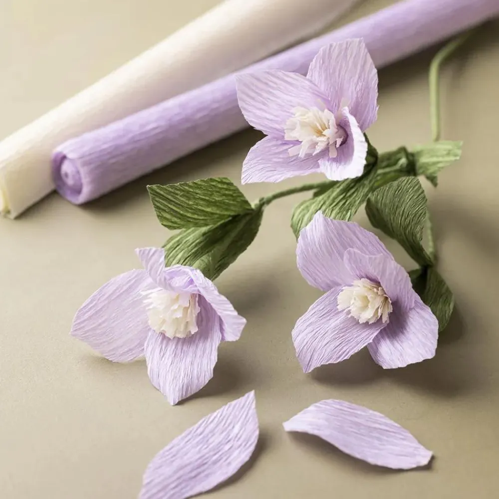 Crepepapiret har en stræk-/crepeprocent på 180. Og hvad betyder det så? Jo det betyder, at det er godt til for eksempel at lave papirblomster ud af, for det kan nemt trækkes og formes, uden det brister og går i stykker.