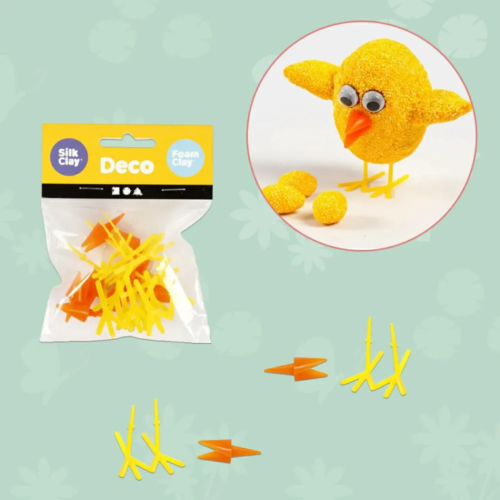 Lav de skønneste lerkyllinger, og gør dem mere livagtige med næb og fødder. Alle typer af selvhærdende ler kan anvendes. Tilbehøret skal selvfølgelig sættes på, inden leret stilles til tørre.