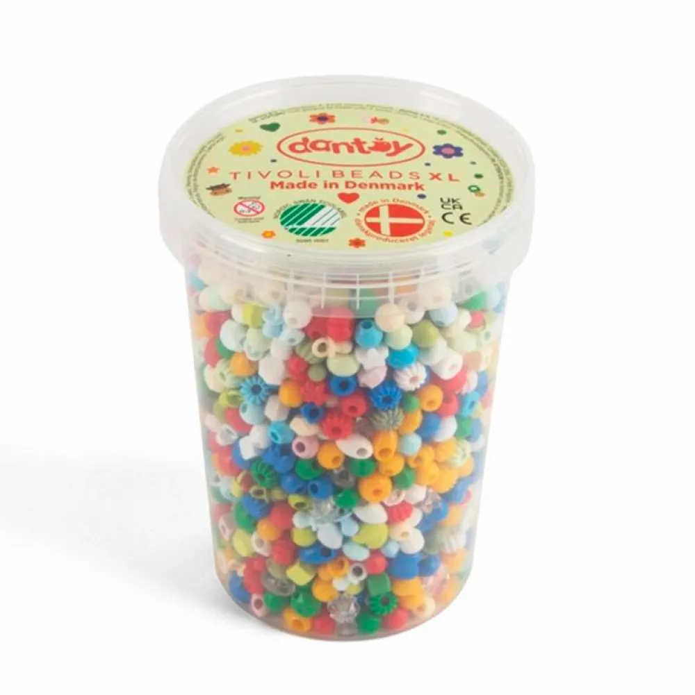 Danske Dantoy laver plastperler af genanvendt svanemærket plast og her er hele 1.580 perler. Nok til at flere børn kan hygge sig med smykkedesign.