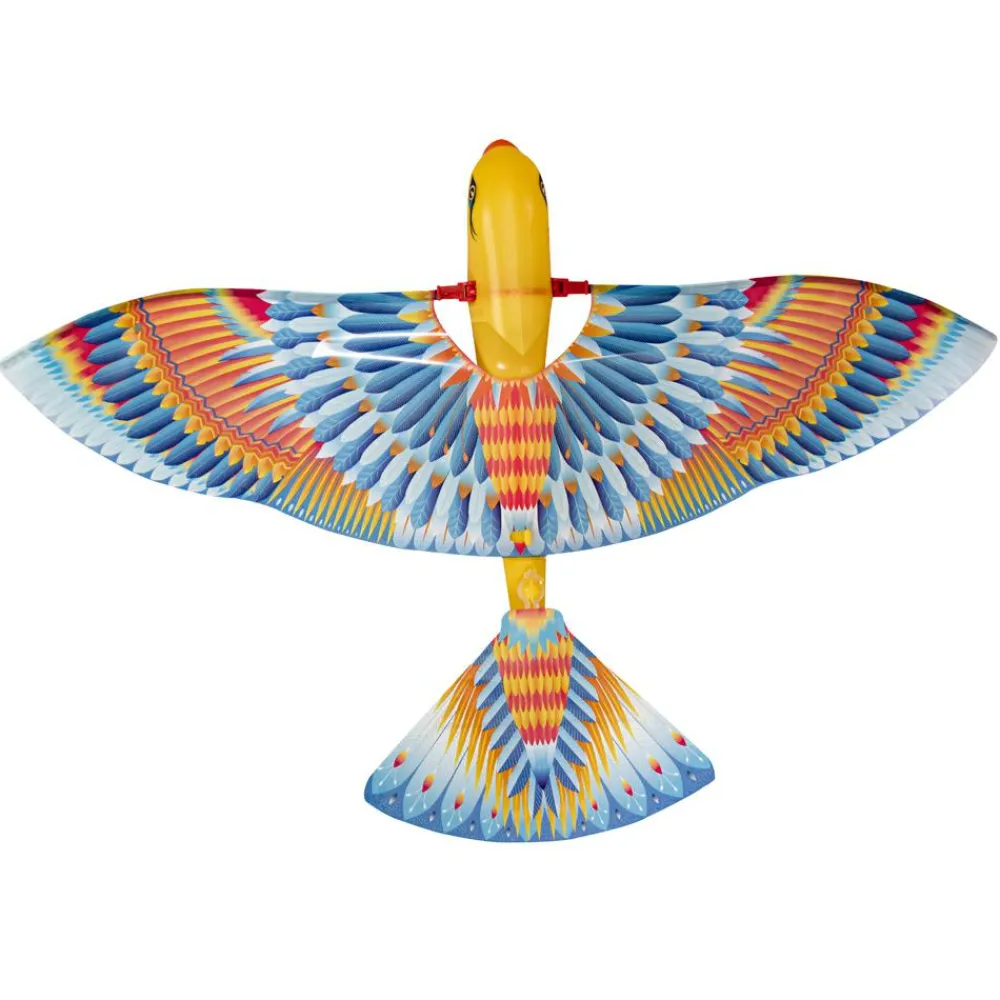 Tim Bird kan flyve ved at du drejer håndsvinget bagerst på fuglen. Inde i “kroppen” er der en gummielastik, som giver flyvekraft til vingerne.