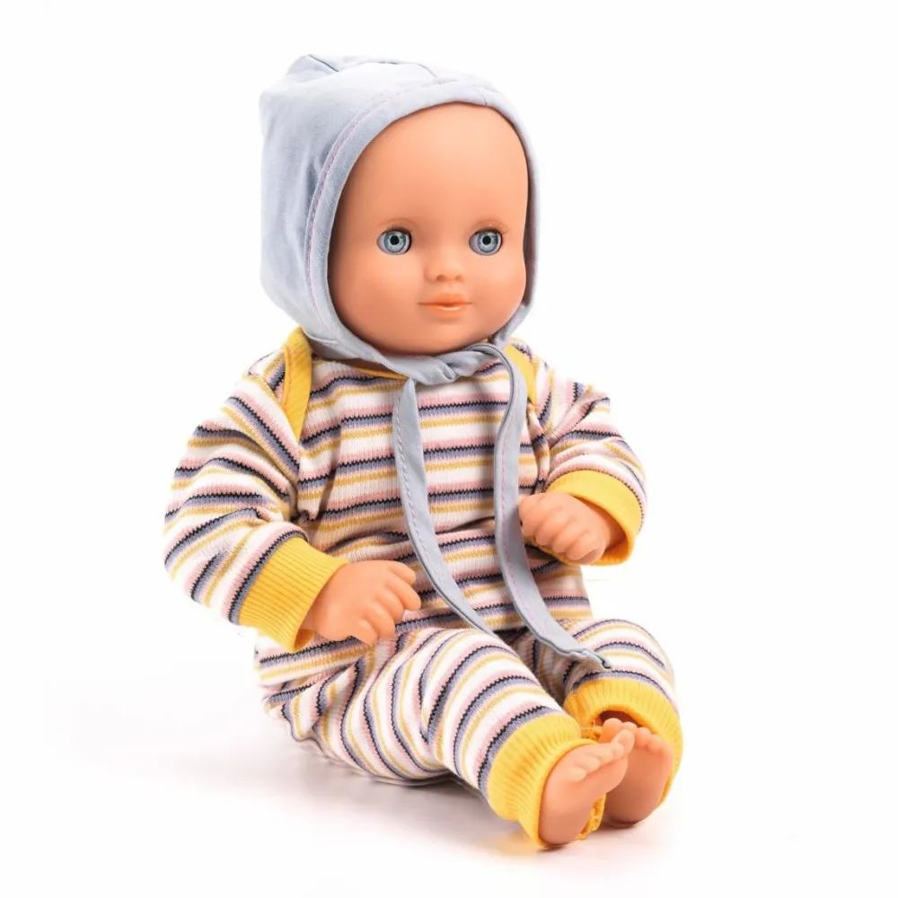 Dukke er frisk på en tur i vaskemaskine, når den bliver beskidt . Den vil bare nøjes med skåneprogram tak. Tøjet kan lukes med velcro og tåler alm. vaskeprogram og 30 grader.