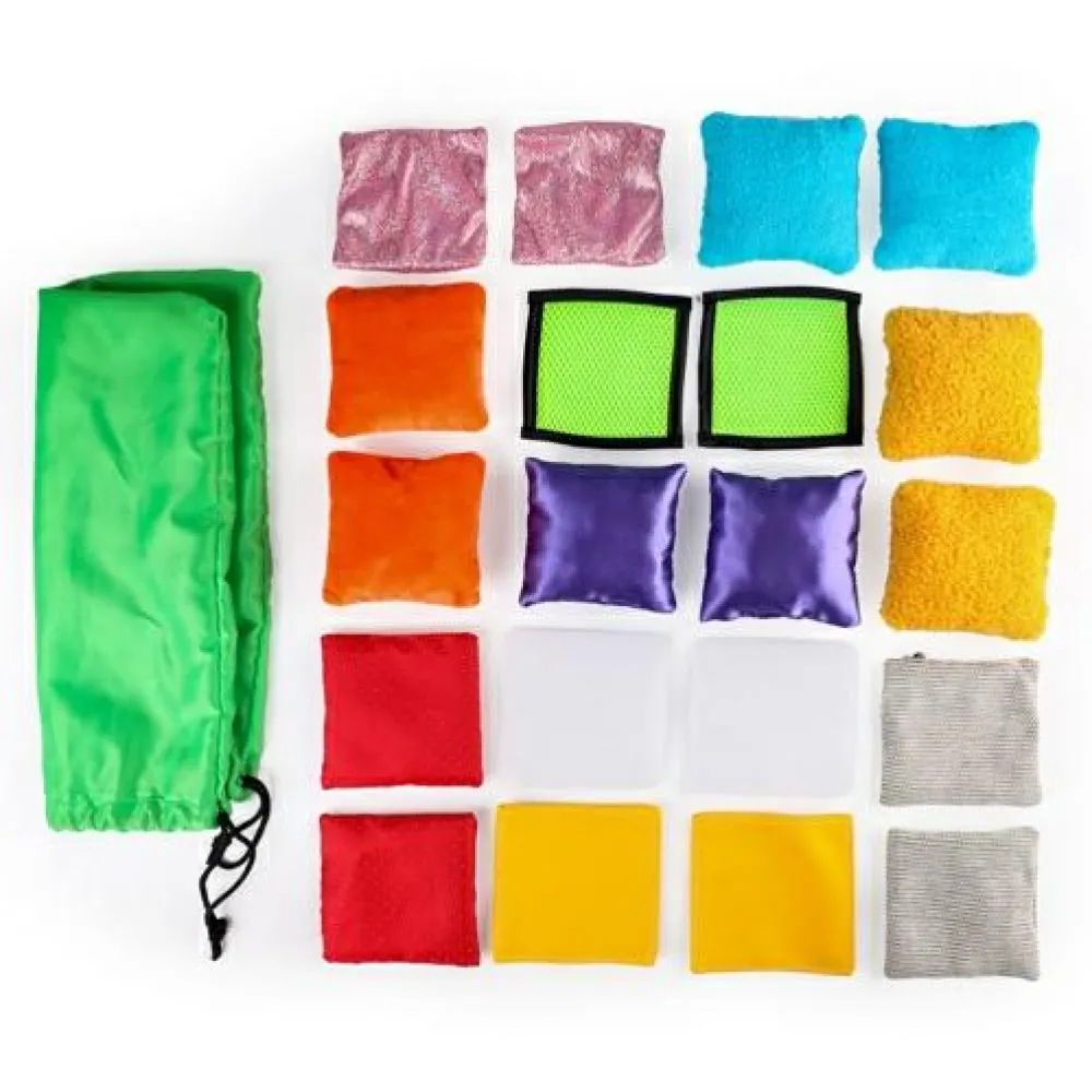 2×10 forskellige sanseposer med forskelligt fyld, farver og overflader.