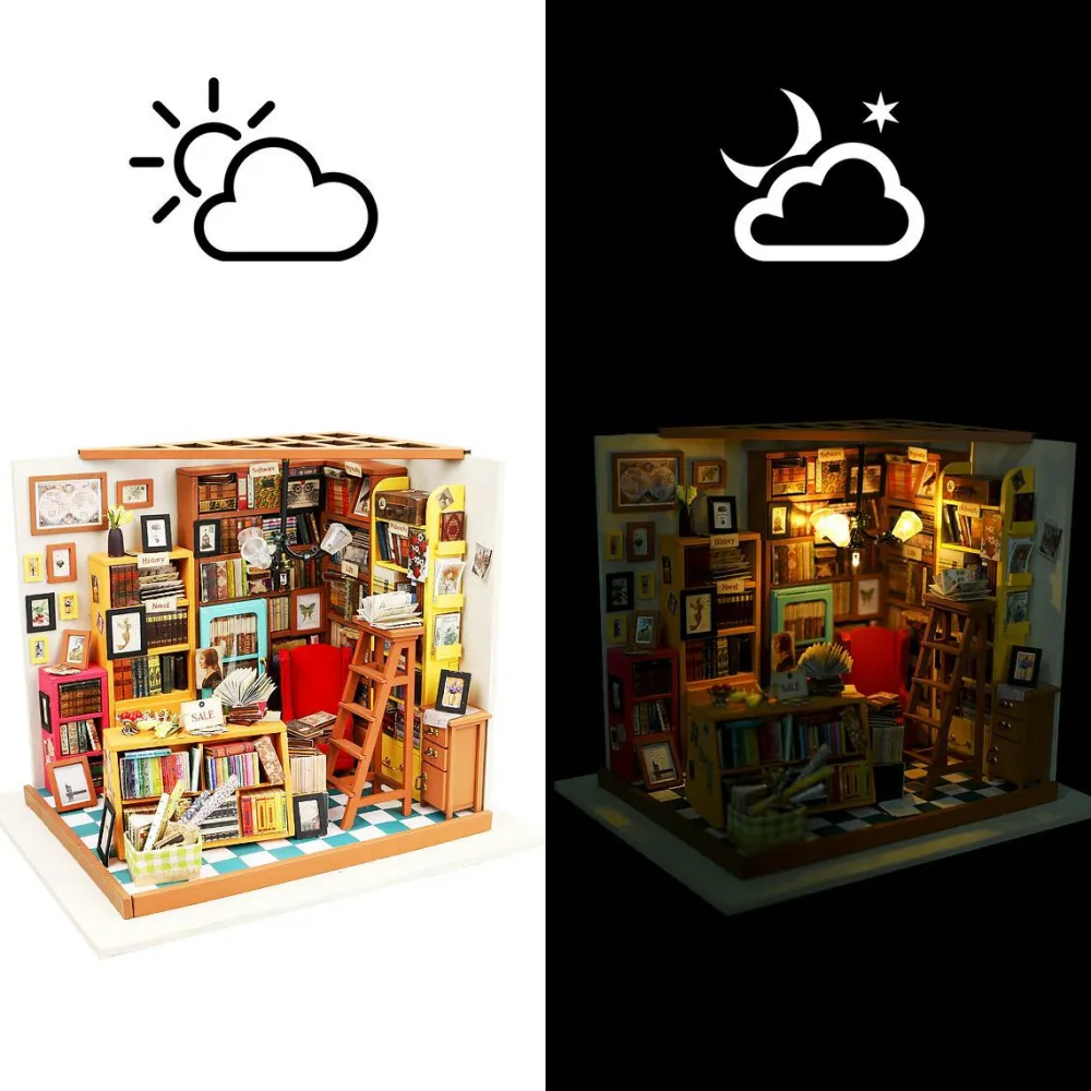 Et meget fint byggesæt i mini-format, hvor du kan få timer til at få med at samle og dekorere en lille boghandel fuld af imponerende detaljer.