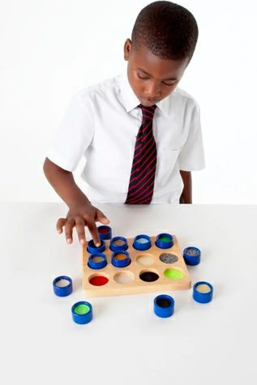 Med dette sæt skal barnet identificere og derefter matche 12 forskellige overflader op mod hinanden, som alle føles forskellige.