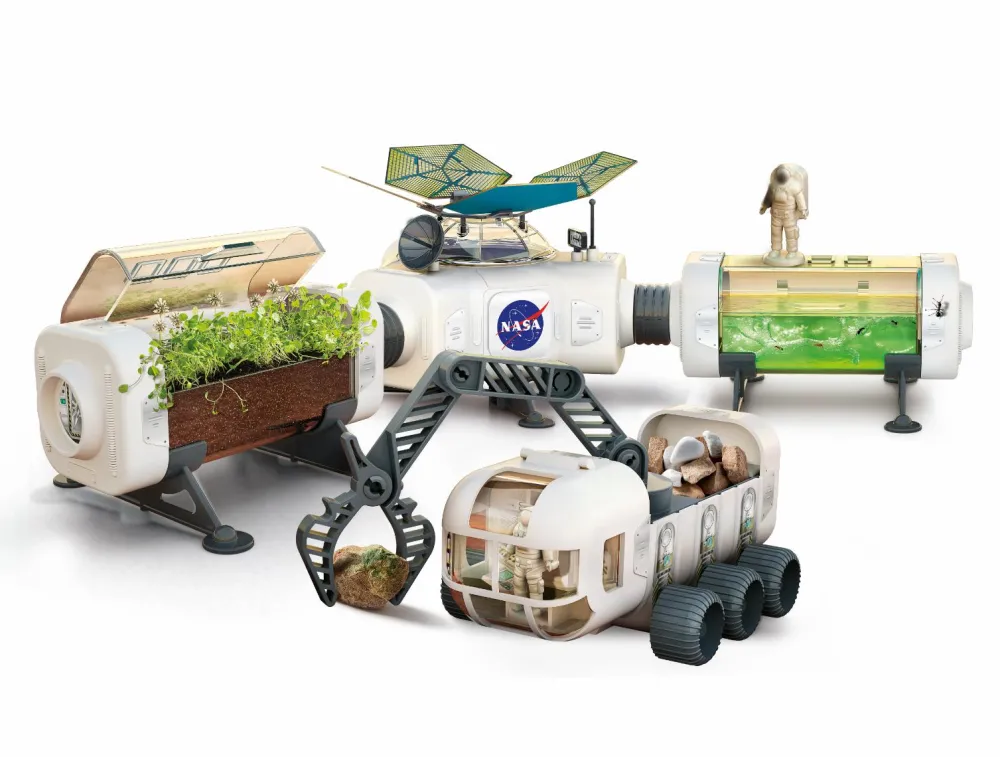 Legen med dette store sæt viser dit barn, hvordan man skal dyrke planter for at overleve og producere ilt samt fjerne CO2, og hvordan man kan sørge for, at der også kan leve andre gavnlige dyr i vores kunstigt skabte miljø på en Marskoloni.