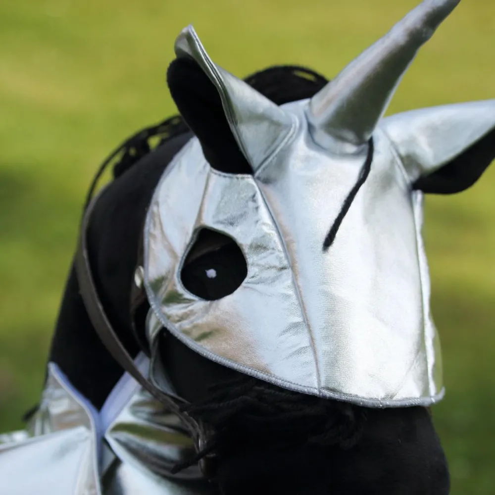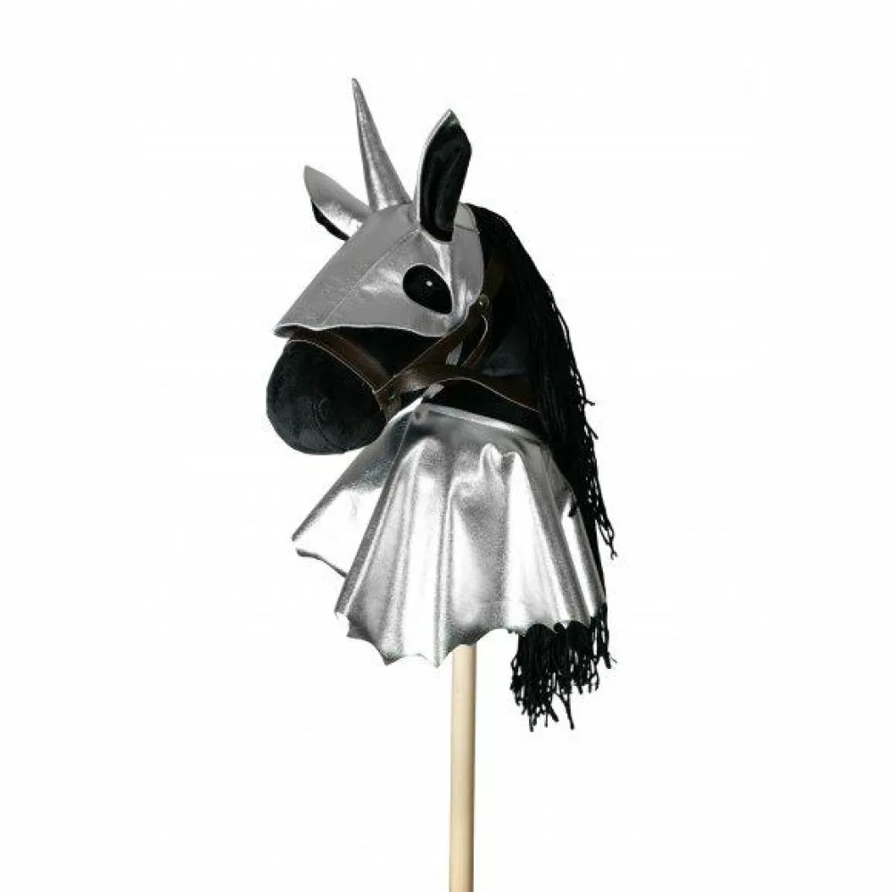 Drag afsted til ridderturnering eller ud på dragetogt med din tro ven kæphesten godt beskyttet i en flot sølvfarvet rustning. Måske kan dit barn sammen med vennerne se, hvem der først får vippet den anden af sin kæphest.