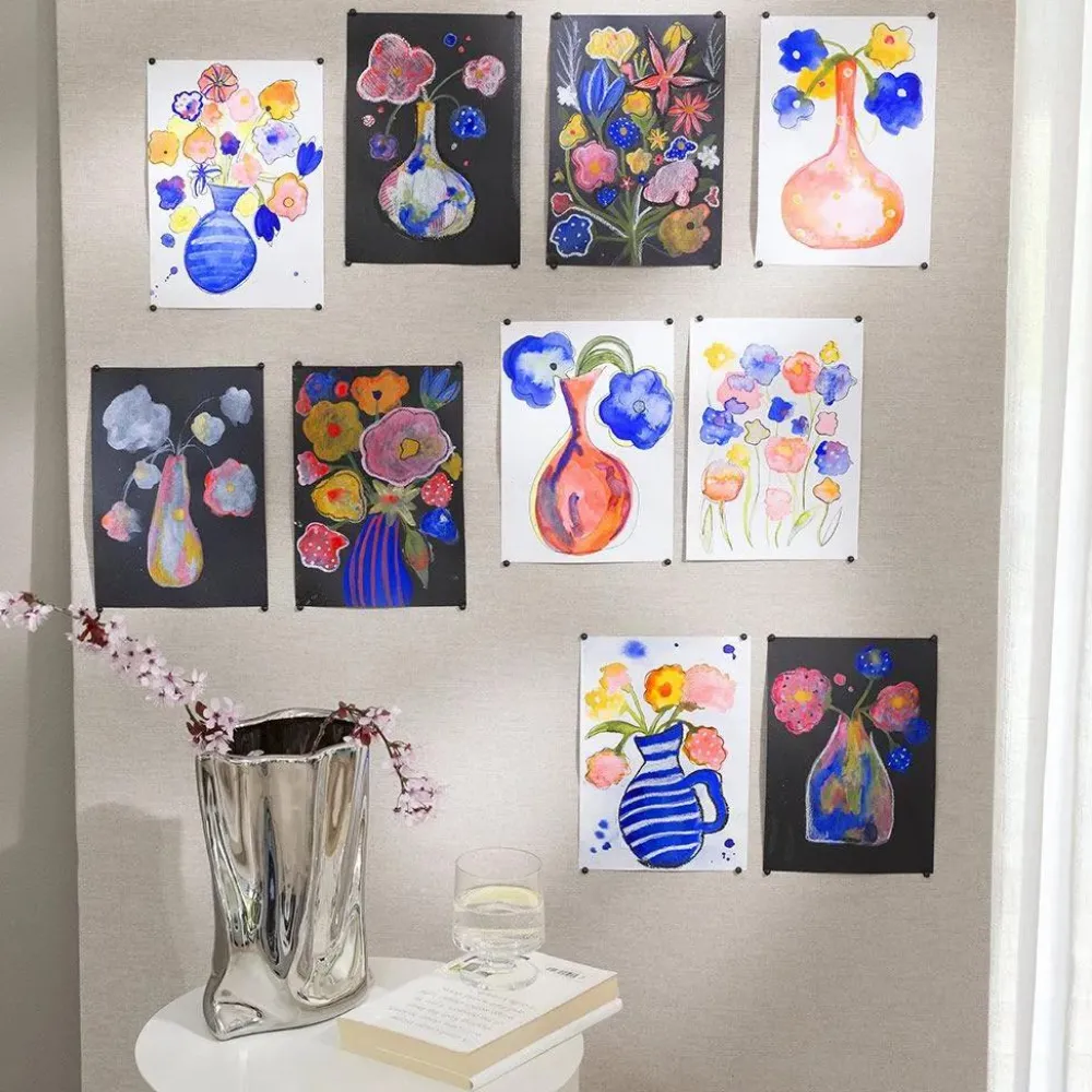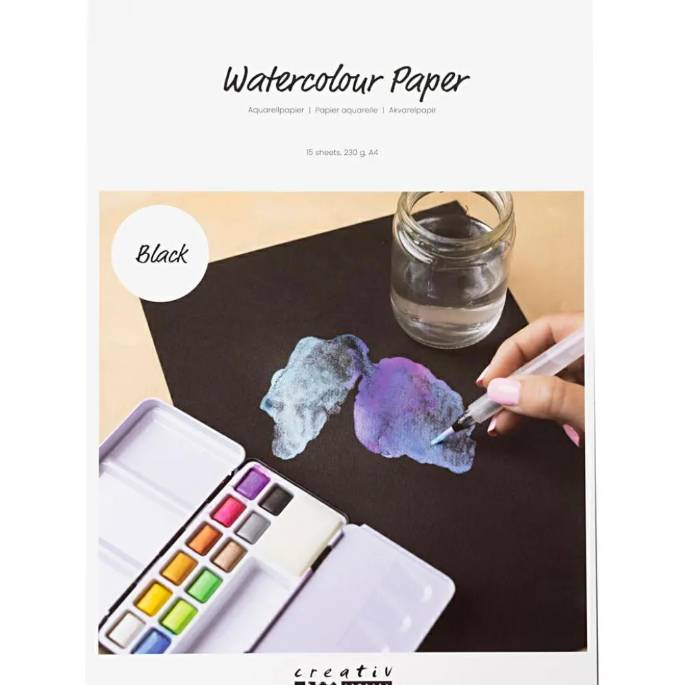 Hvidt akvarelpapir har du og dit barn måske allerede haft fingrene i og malet på. Disse ark er sort akvarelpapir, hvor jeres akvarelfarver kan træde tydeligt frem, hvis I bruger akvarel med perlemorspigmenter eller hvis I blander dem med hvid akvarelfarve, så de træder tydeligt frem på papiret.