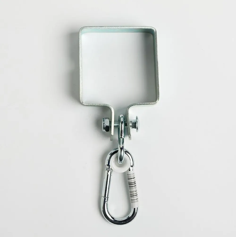 Denne gyngekrog er designet til firkantede træbjælker på 90 x 90 mm og giver en stabil ophængning af gynger. Den kraftige metalplade sikrer en solid montering, og den ekstra tykke galvanisering beskytter mod slid og vejrpåvirkninger.
