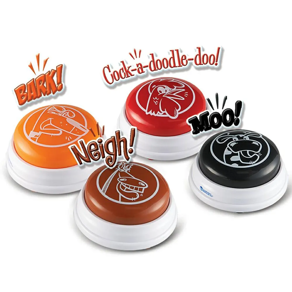 Med sættet her får I 4 svarknappermed sjove buzz-dyrelyde.