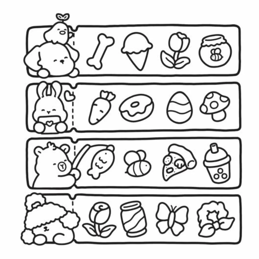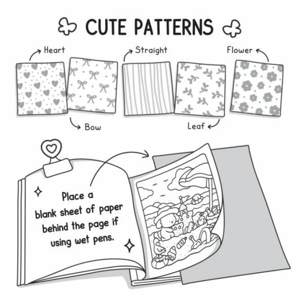 Alle de søde motiver er tegnet tydeligt op med ret brede streger, men til gengæld er der ikke ret mange små detaljer på siderne. Hvis et gardin skal være stribet eller en blomst have mange farver, så er der rig mulighed for, at man selv opfinder mønstre og dekorationer.
