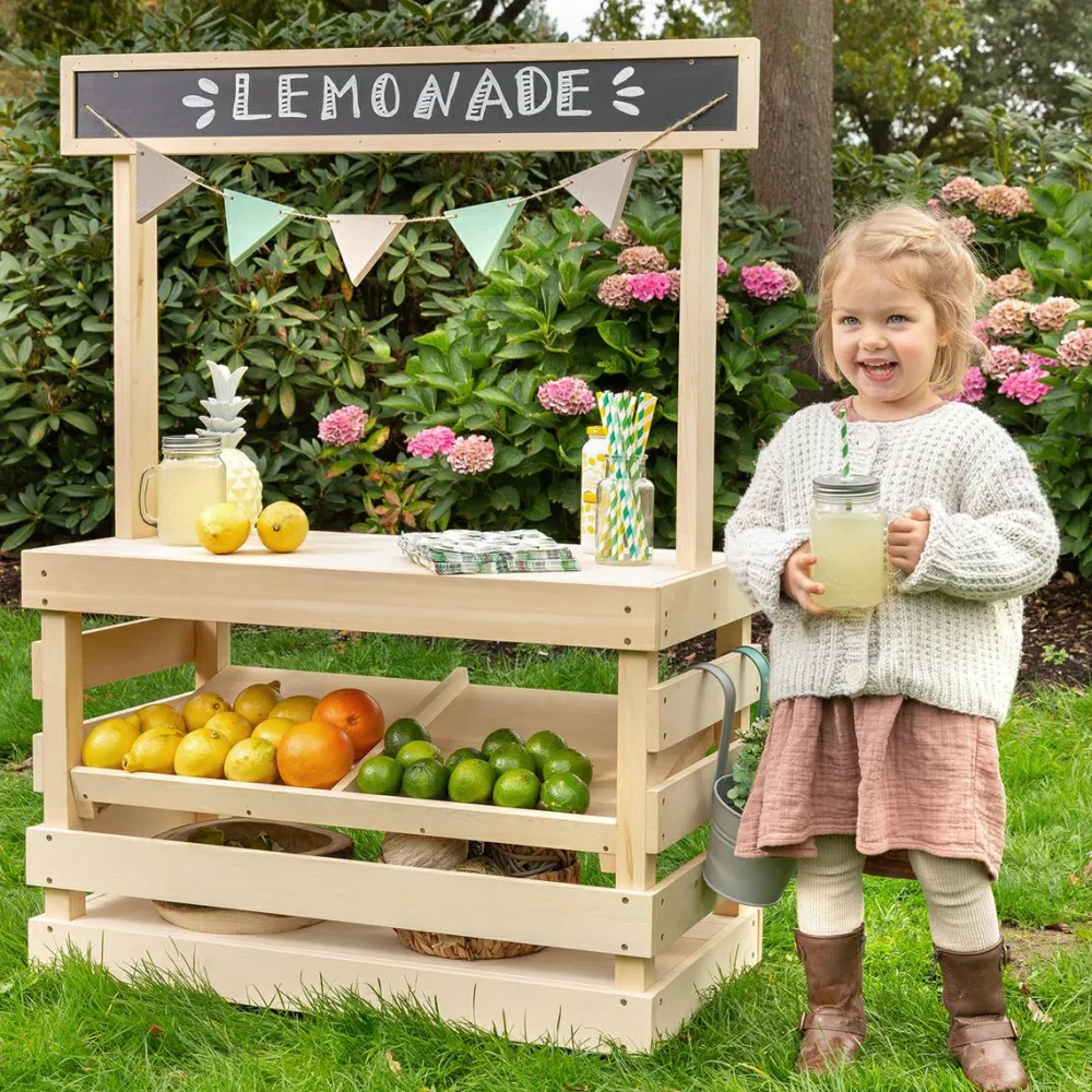 Kom og køøøøb. Kunderne må straks over at se, om der er citron og sukker i lemonaden eller måske mælkebøtteblade og græsdrys. Eller måske sælger dit barn legemad, knasende sandkager, blomsterbuketter, perleplader eller måske sit gamle legetøj til vennerne.