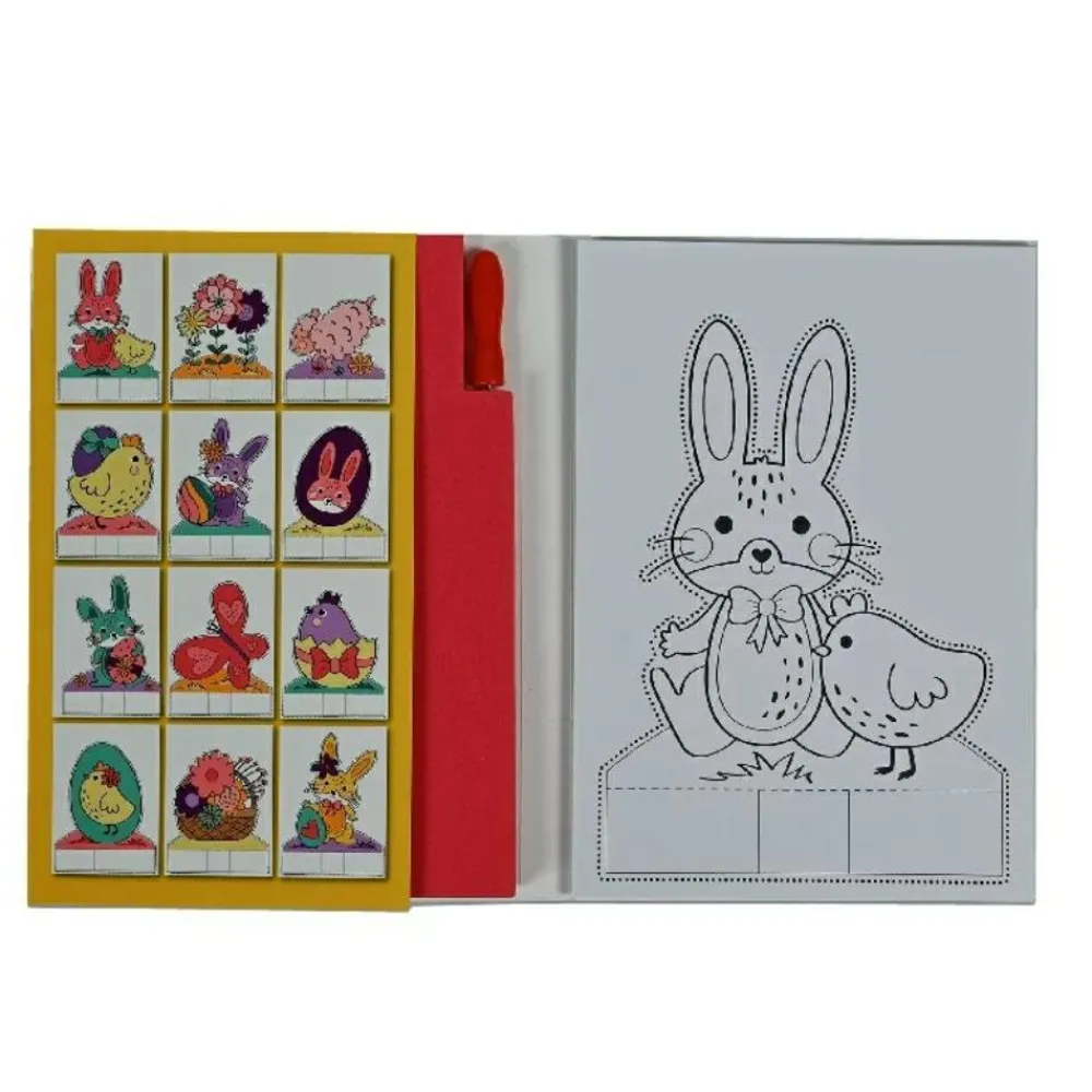Prik påskekyllinger, påskeharer og andre søde påskedyr ud med pennen. Så er de lige til at farvelægge og bruge som påskepynt, der kan stå selv.